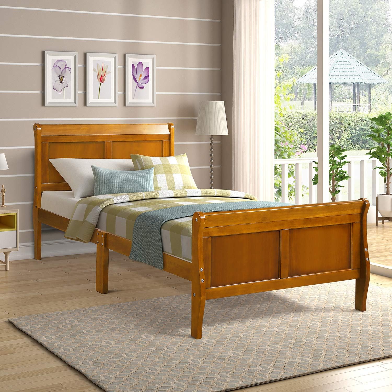 Amazon Com Sleigh Bed Twin No Box Spring Need Julyfox Solid Wood