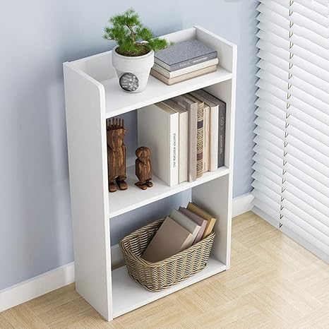 Xatos Small Bookshelf 3 Tier Simple Floor Bedroom Shelf White