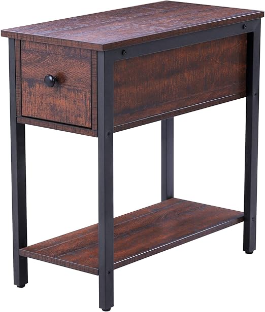 Chair Side Table Flip Top 2 Tier Narrow End Table Hidden Storage
