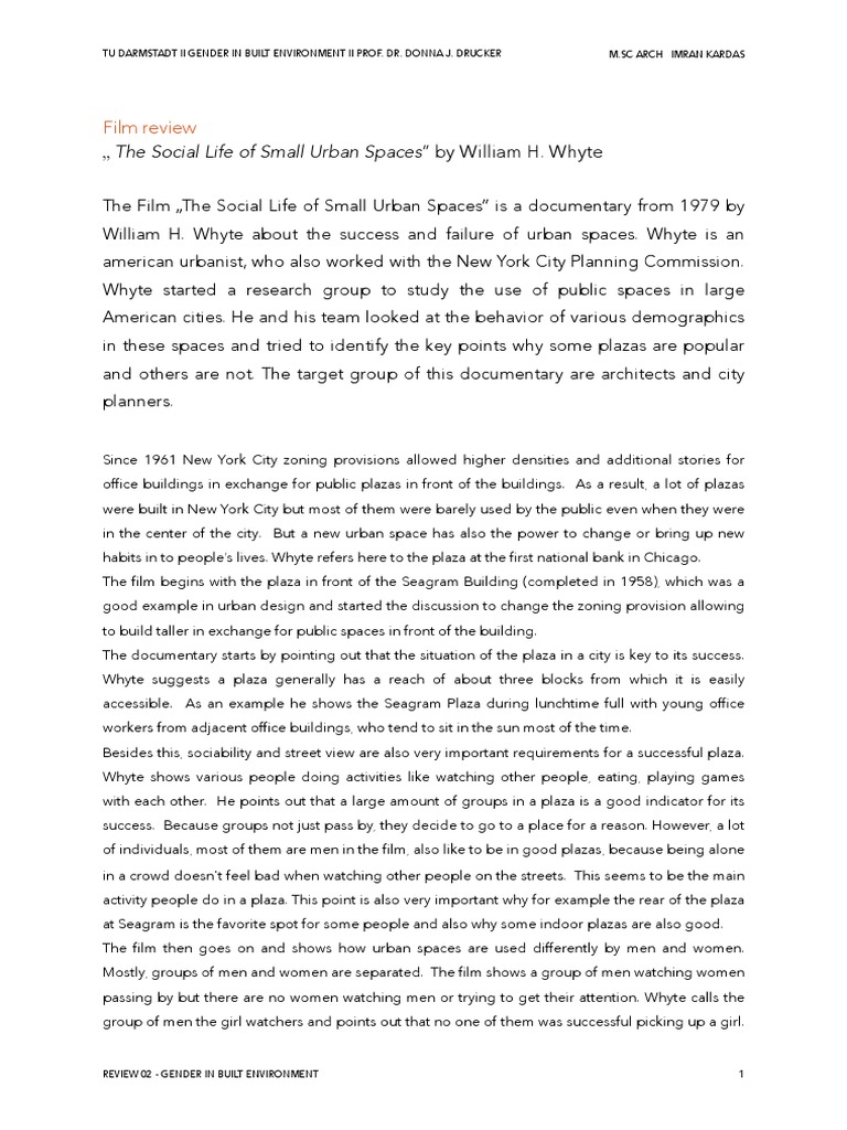 Ethics Film The Social Life Of Small Urban Spaces Ethics In