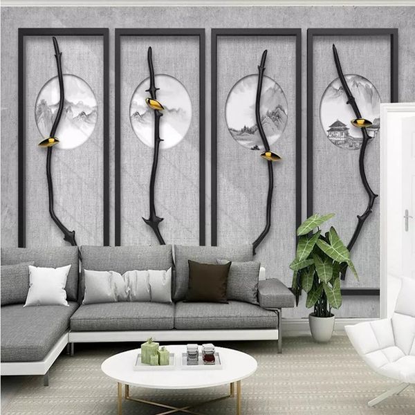 Buy Custom 3d Wallpaper Chinese Style Ink Landscape Abstract Woods