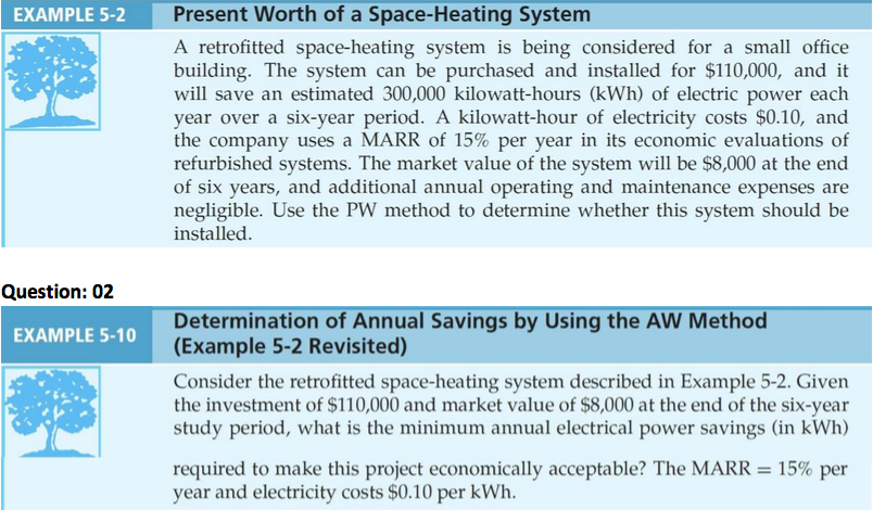Solved Example 5 2 Present Worth Of A Space Heating Syste