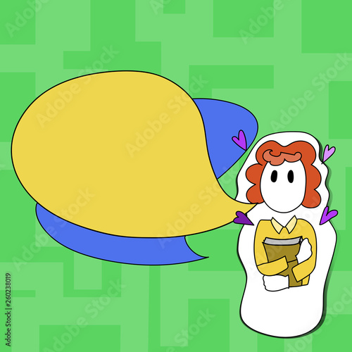 Girl Holding Book With Small Hearts Around Her And Two Color